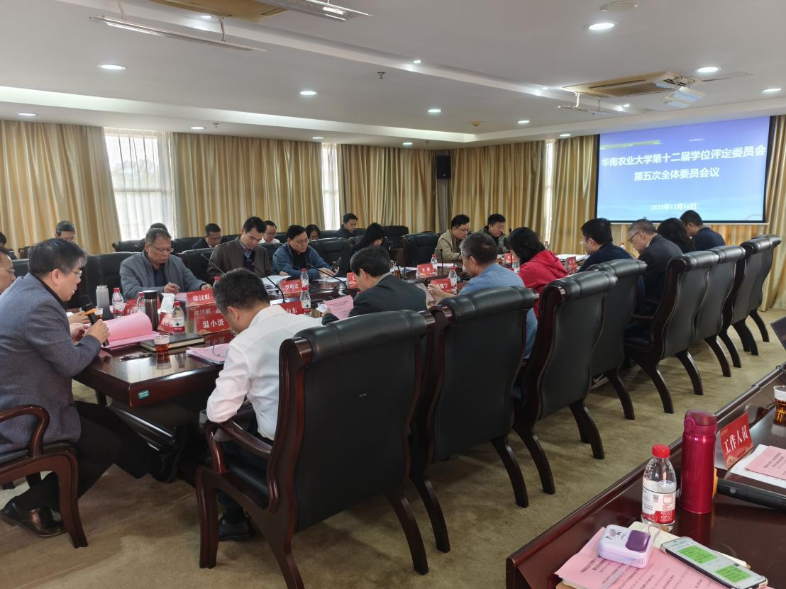 2025年12月16日上午,华南农业大学第十二届学位评定委员会第五次全体会议在行政楼三楼东会议室顺利召开。校长、校学位评定委员会主席薛红卫主持会议并作总结讲话。