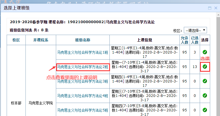可通过该功能查询到自己所选的全部课程情况。只有在[选课结果信息查询]里能查询到相应课程,才是选课成功,否则无效。