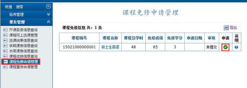 达到《硕士生英语》免修条件但未在上学期进行网上申请的研究生,可在研究生教育管理系统申请英语免修(免修条件见附件3)。如果申请免修则不用进行本课程的网上选课,已选课的必须退课。
